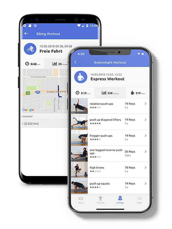 In the teamfit app you have many possibilities to train different things. You can choose between running, cycling and bodyweight training. In bodyweight training you can once again distinguish which parts of your body you want to train. Either you train the whole body, stomach & back, buttocks & legs or the upper body.
